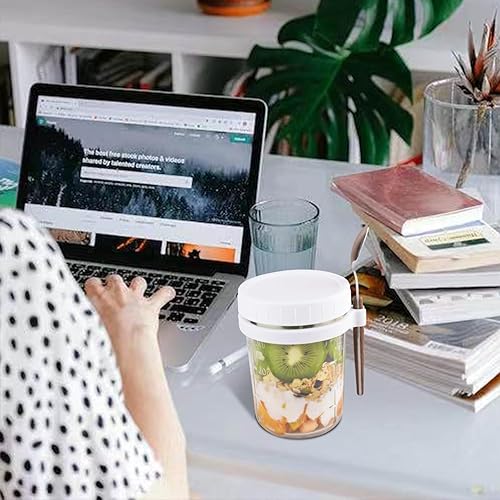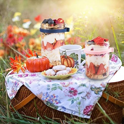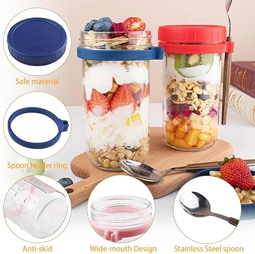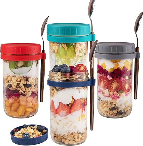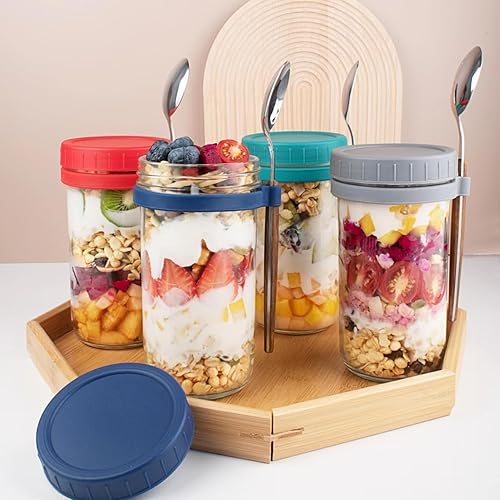 Overnight Oats - Lot de 4 bocaux en verre avec couvercles et cuillères - Grande capacité - Pour lait, céréales, yaourt, fruits