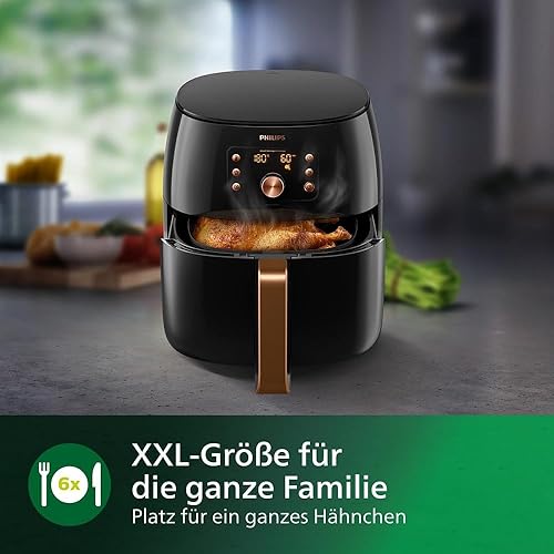 Airfryer Philips Smart Sensing XXL, 7.3L (1.4kg), 90% de graisse en moins grâce à la technologie Rapid Air, Application de recette (HD9860/90)