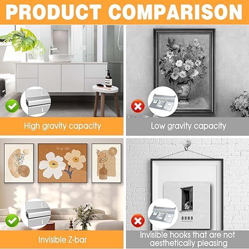 Rail Fixation en Z pour Miroir Lourd, 2 Supports de Fixation Murale Barre en Z, 30 cm Cintre pour Tableaux Français pour Suspendre pour Tableaux Œuvres d'Art et Supports Muraux