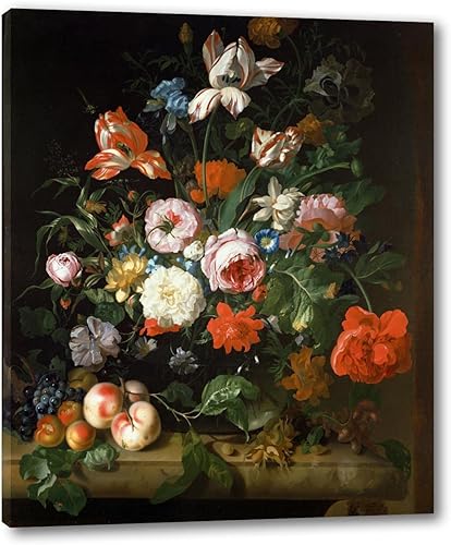 EVANEM Tableau toile baroque. Rachel Ruysch Impressions sur toile. Nature morte avec des fleurs - Célèbre reproduction de Tableaux à l’huile pour salon Home Decor 50x60cm sans cadre