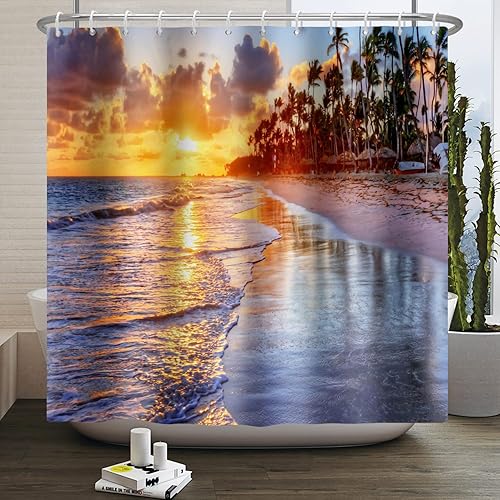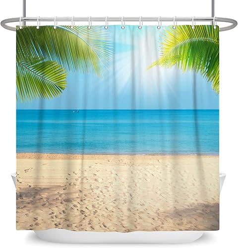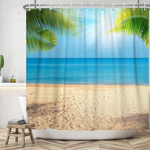 SDOTPMT 105x160cm Rideau de Douche Palm Beach en été Photographie de Voyage Famille Cartes Postales Rideaux de Salle de Bain Traveler Explorer Rideau de Douche imperméable en Tissu avec Crochet