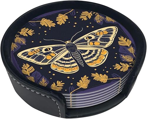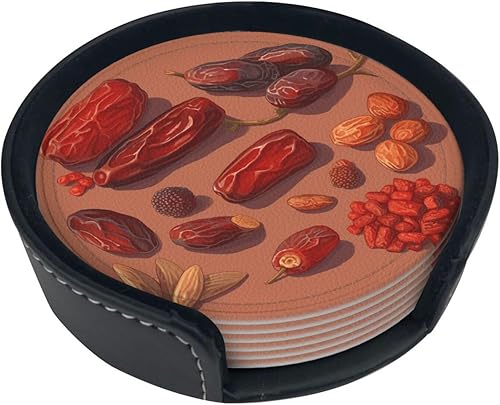 Lot de 6 dessous de verre en cuir avec support en forme de tête de mort pour la maison, le bureau, la cuisine