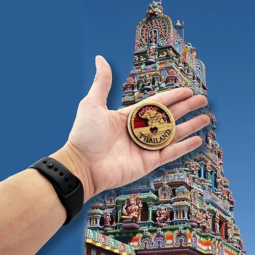 BDM Aimant de réfrigérateur de thaïlande, Souvenir thaïlandais, aimants d'éléphant en Bois importés Faits à la Main