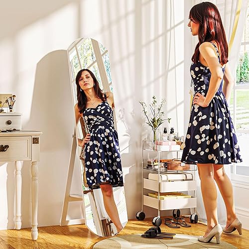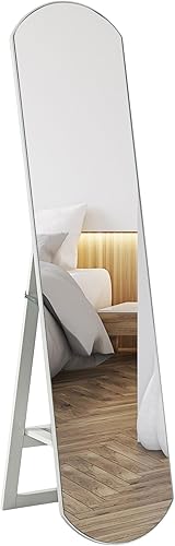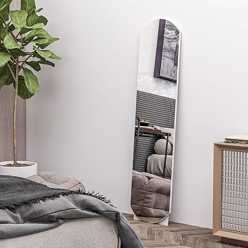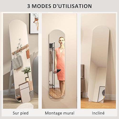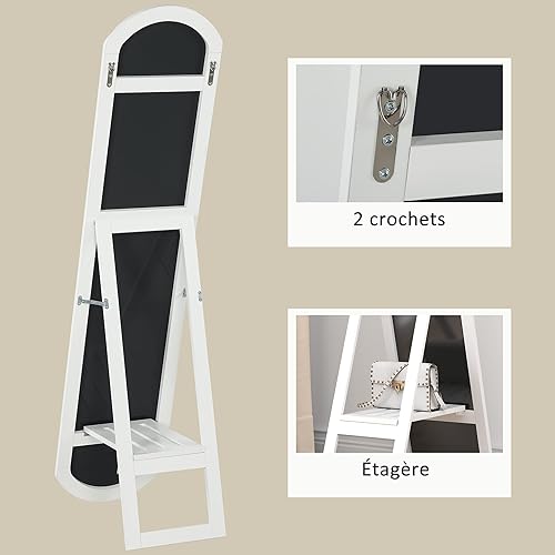HOMCOM Miroir sur Pied arqué 150 cm, Grand Miroir avec étagère de Rangement, Montage Mural ou sur Pied, pour Chambre, entrée, Couloir, Blanc