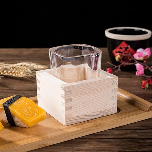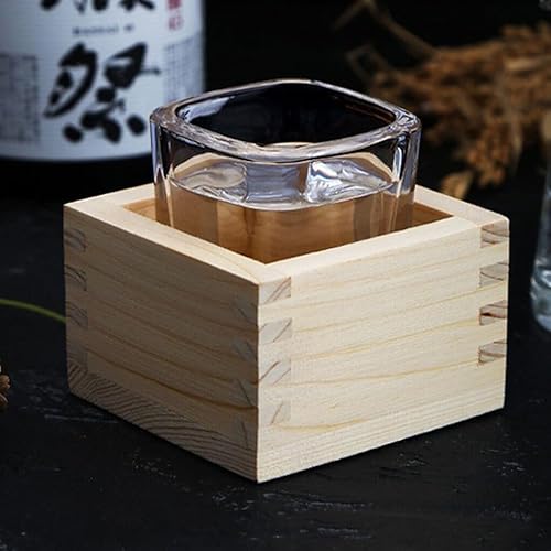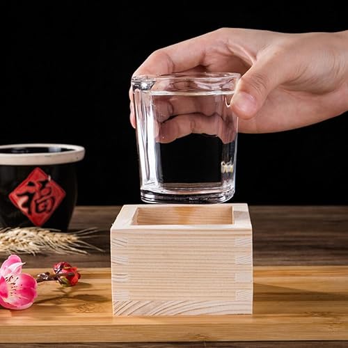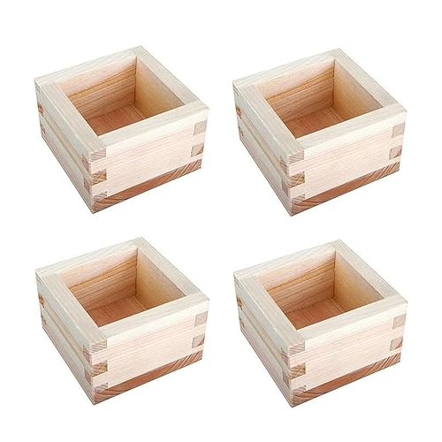 VUIUYOIES Boîte à Tasses Saki en Bois Hinoki Japonais, 4 pièces/Ensemble, Construction Durable, élégante boîte carrée en Bois Japonaise Facile