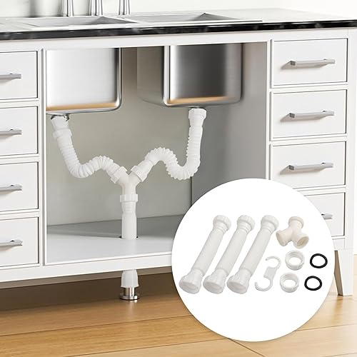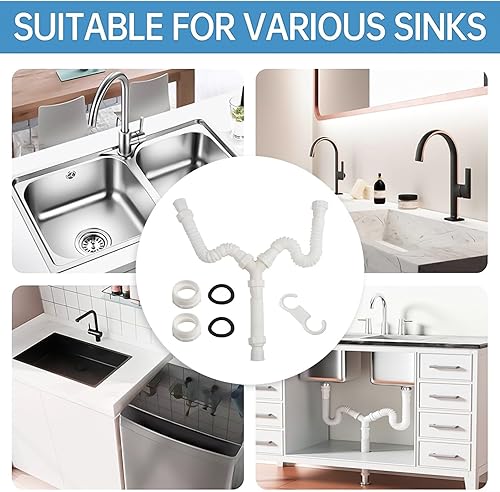 HpLive Double siphon, kit de vidange flexible à double évier : kit de siphon réglable de 20 cm à 80 cm pour éviers G1-1/2 & G1-1/4 pour lavabo, évier, lavabo