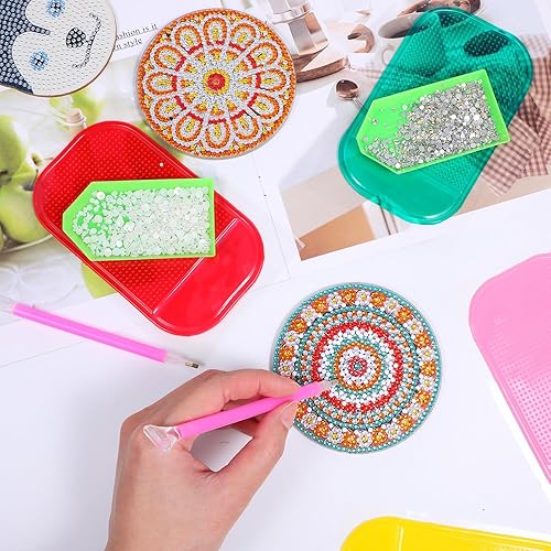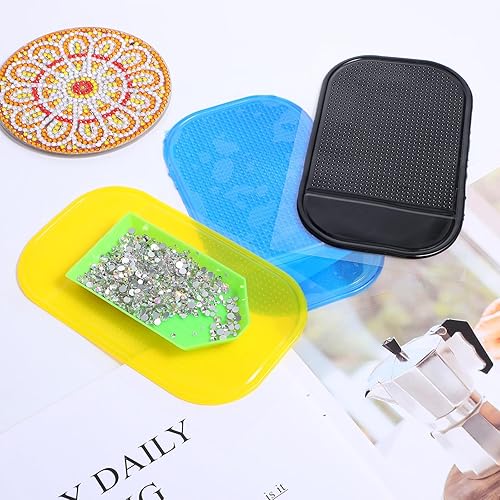 Gjinxi Lot de 8 tapis adhésifs antidérapants pour peinture diamant - Kit de support universel en polyuréthane pour enfants et adultes - Fournitures d'art Dimond pour tenir le plateau - Accessoires de