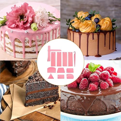 QHFlashbuy Grattoir à Gâteau pour Crème à Beurre,12 Pièces Lisseur Gateau,Grattoir Gateau Patisserie Réglable,Spatule à Gâteau et Coupe Pate en Plusieurs Tailles pour Outils de Cuisson DIY.