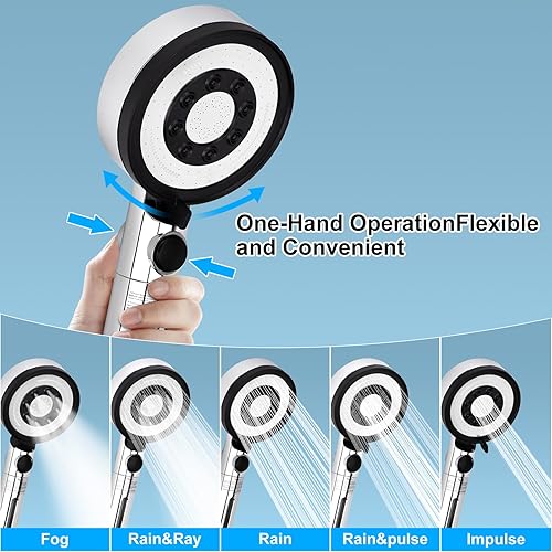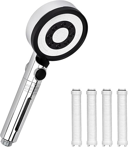 Pommeau de douche haute pression avec 4 filtres PP et 5 fonctions de pulvérisation - Douchette à main économe en eau avec aspect chromé pratique - Fonction arrêt (sans tuyau ni support)