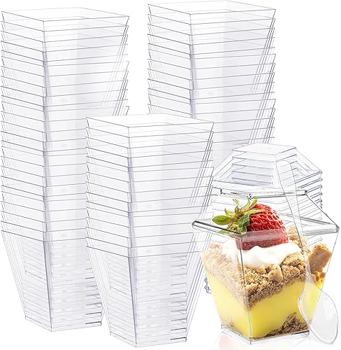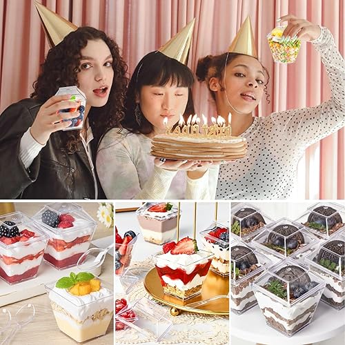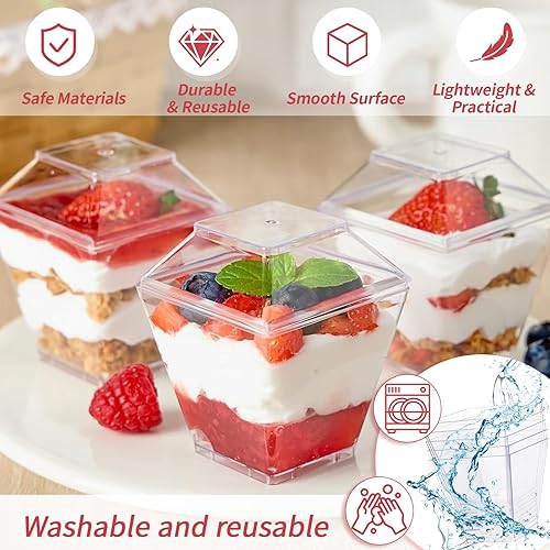 50Pcs 60ml/2oz Verrine Tiramisu avec Couvercle Verres à Dessert Reutilisable Verrine Aperitif Coupelle pour thé à la Française Anniversaire Fêtes Mariages Pique Niques pour Creabake Pudding Mousse