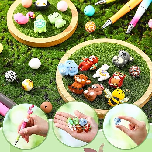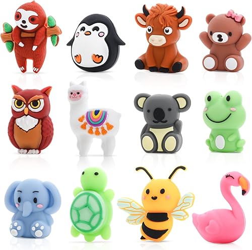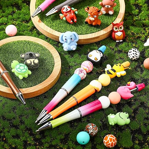 Auiremrti 12 Pièces de Perles en Silicone 3D Animaux pour Stylos, Accessoires de Stylos à Perles, Grand Lot de Perles à Enfiler pour Création de Porte-clés, Artisanat Fait Main