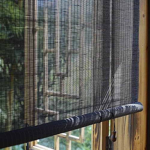 Store Enrouleur Bambou Noir Stores À Rouleaux Romains Store Venitien Bois Maison Rideau Rideaux Occultants Respirant Lamelle de Bambou pour Fenêtres/Portes/Balcons,Personnalisable (60x200 cm)