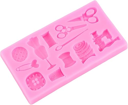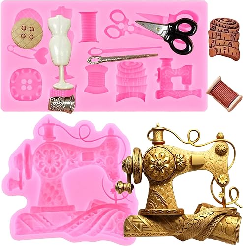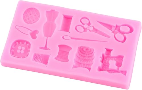 RFGHAC Outils de couture Moules en silicone Machine à coudre Moules à fondant Ciseaux Bouton Couture Vêtements Designer Moules à chocolat pour décorer les gâteaux Pâte à fleurs Bonbons Argile polymère
