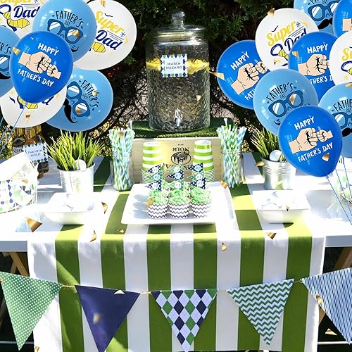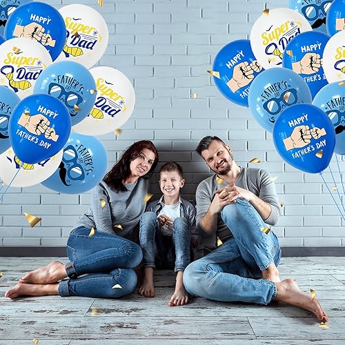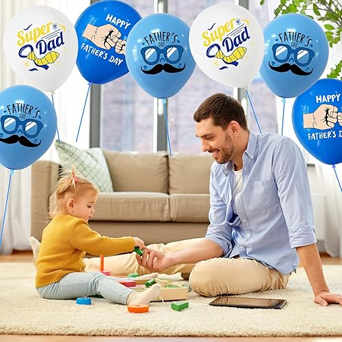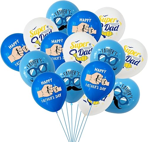 Lot de 15 ballons décoratifs en latex pour fête des pères, fête des pères, 30,5 cm, bleu et blanc