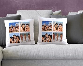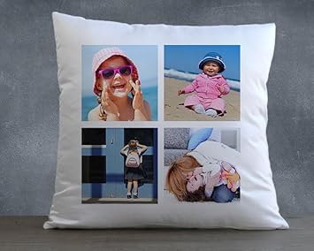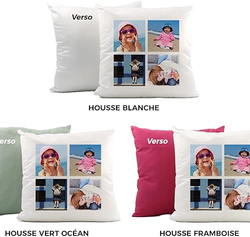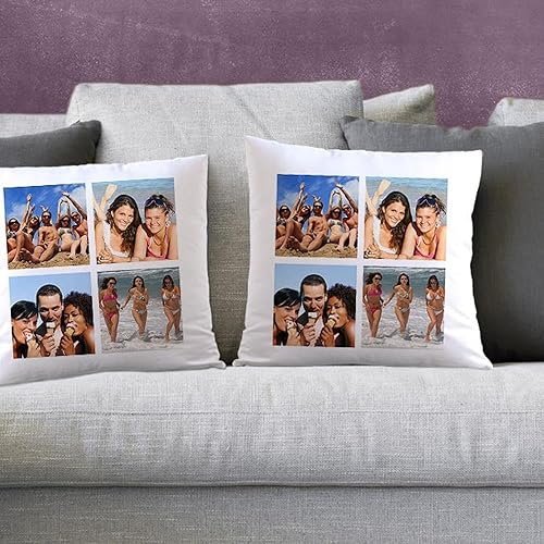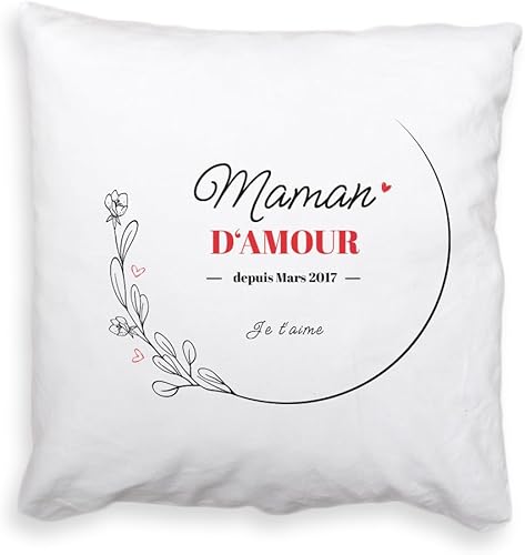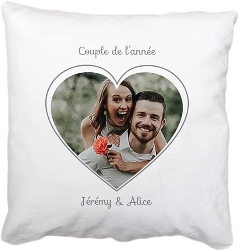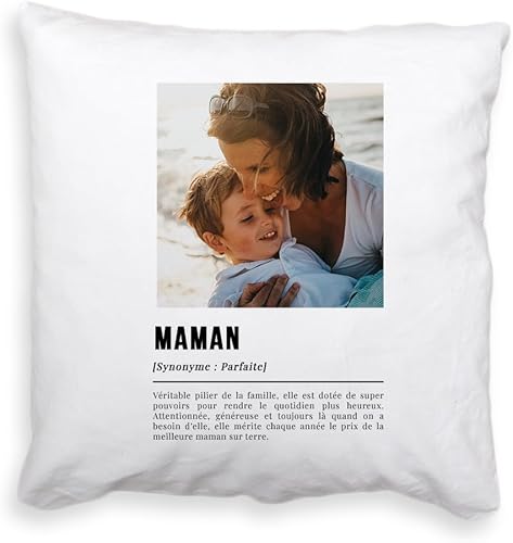 CADEAUX.COM - Fête des Mères - Coussin Personnalisé 2 Photos Rond - Housse Blanche - Coussin 40 x 40 - Coussin Canapé - Cadeau Personnalisable avec Photos - Idée Cadeau Maman - Cadeau Femme