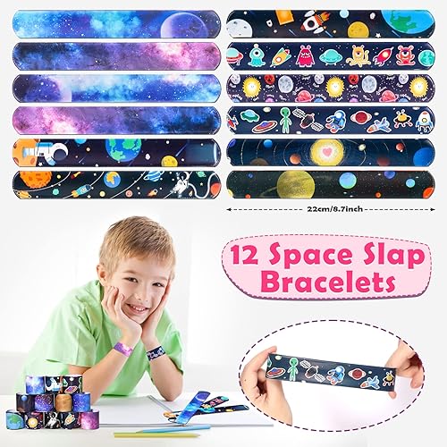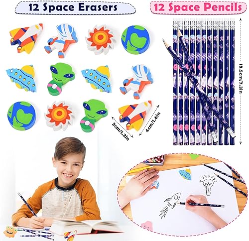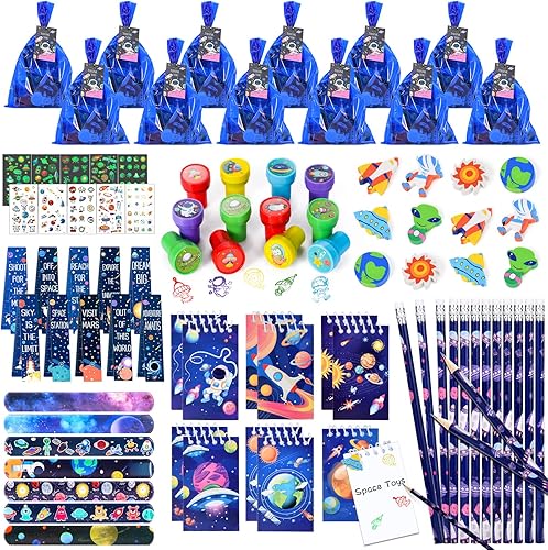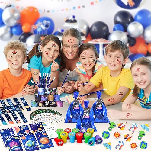 vamei 120pcs Pinata Anniversaire Garcon Espace Papeterie Enfants Carnet de Notes Crayon Gomme Tampon Marque-Pages Tatouages Slap Bracelet Sac Cadeau Fête Anniversaire Jouet Remplissage Pinata