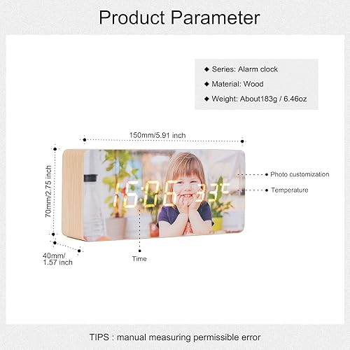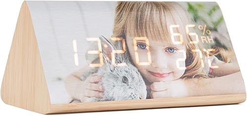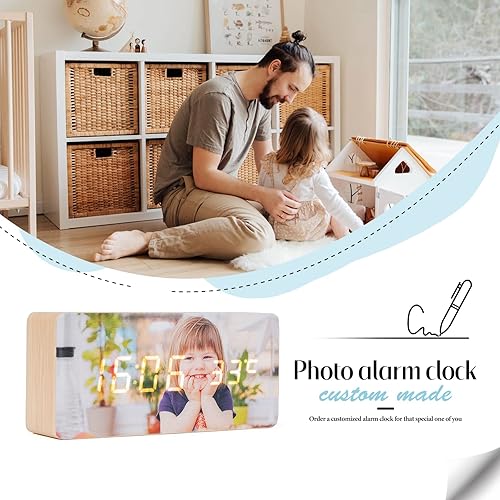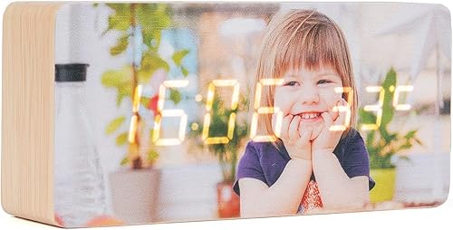 ALBERTBAND Réveils Horloge Numérique en Bois Personnalisée avec Photo Réveil LED Multifonction avec Affichage de l'Heure/de La Température pour Les Voyages au Bureau à Domicile (#2)