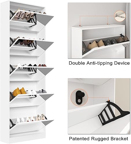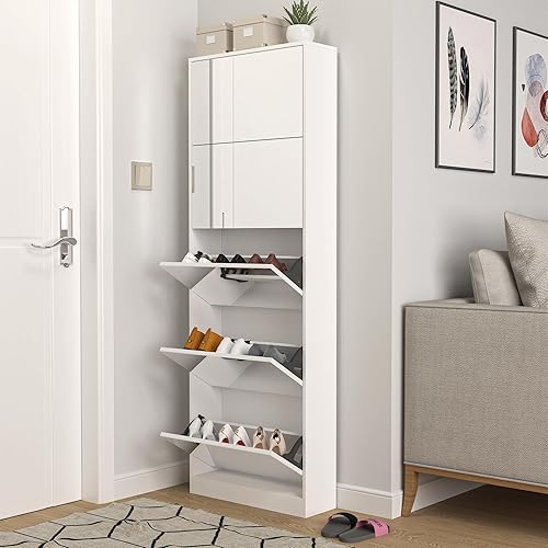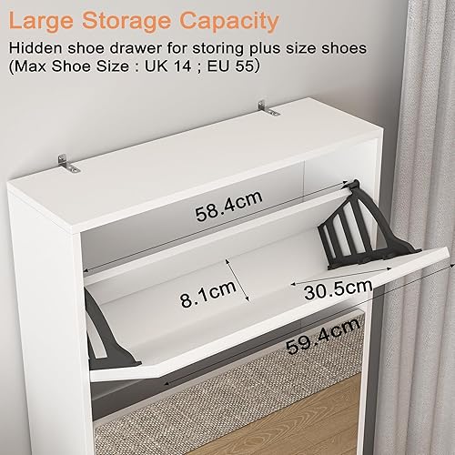 Organizedlife Armoire à Chaussures avec Miroir, Armoire à Chaussures étroite à 5 Niveaux avec tiroir Rabattable, Rangement caché pour l'entrée