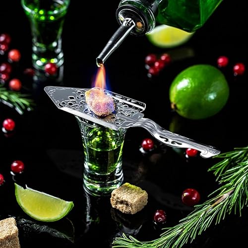 Haptufer Ensemble de 6 Cuillères à Absinthe en Acier Inoxydable, Kit Vintage pour Bar à Cocktails avec Verre à Absinthe et Filtre pour Cuillères à Absinthe Creuses