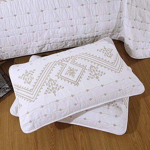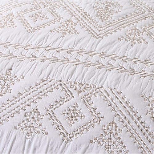 WINKE Dessus De Lit 2 Personnes 240 X 260 Blanc Matelasse Boutis Couvre-Lit 100% Coton Brodé,Couvre-lit D'été Matelassé Réversible avec 2 Taies d'oreiller,240X260CM-White