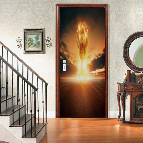Autocollant de Porte Feuilles vertes Décoration Autocollants De Porte Imperméable Amovible Autocollants Enfants Adulte Chambre Salon Porte Poster L83 x H204cm