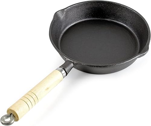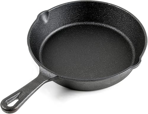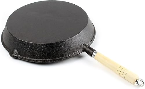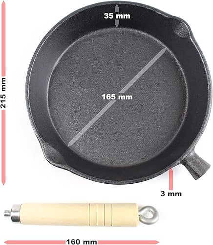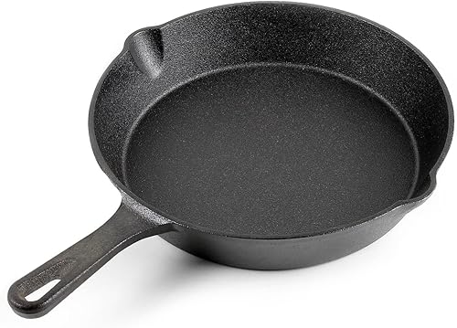 WilTec Poêle à Frire en Fonte Ø25cm avec Manche 2 Bec verseur Accessoires Cuisson Effet Anti-adhésif Naturel Cuisine Usage Polyvalence Extérieur