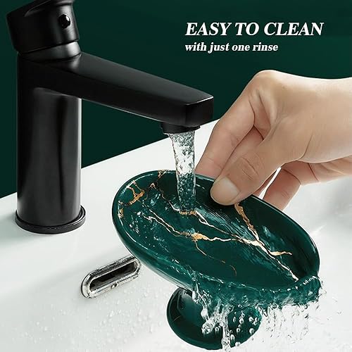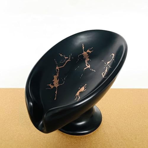 UBRAVE Porte-Savons, Boîte à Savon en céramique, Porte-Savon de Salle de Bain, Porte-Savons avec Drain, Nettoyage Facile SéChage Rapide sans Percage, pour Salle de Bain, Lot de 1 Noir