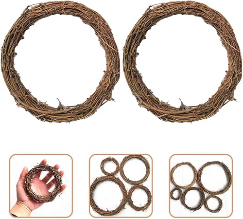 HOMSFOU 16 Pièces Couronne De Vigne Anneaux Mini Rotin Naturel Branche De Vigne Couronne Cerceau pour Bricolage Artisanat Mariage Décors De Fête De Noël