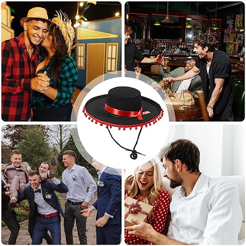 Palaufr Chapeaux De Fête Sombrero - Chapeau Costume Flamenco Espagnol Sombrero à Large Bord,Costume Cosplay à Large Bord avec Pompons pour Hommes, Femmes et Événements Festifs