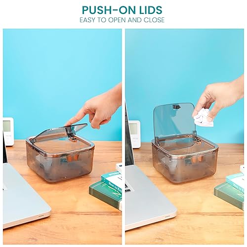 BELLE VOUS Lot de 2 Petites Poubelles de Bureau avec Couvercle - Mini Poubelle en Plastique 1,4L et 2,2L - Petite Poubelle de Table - Cuisine - Chambre - Salle de Bain - Toilette