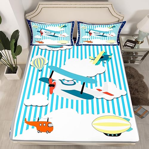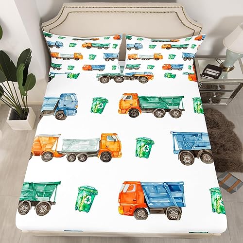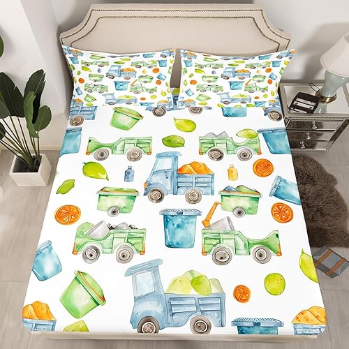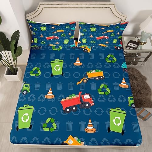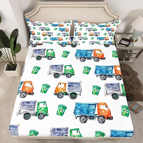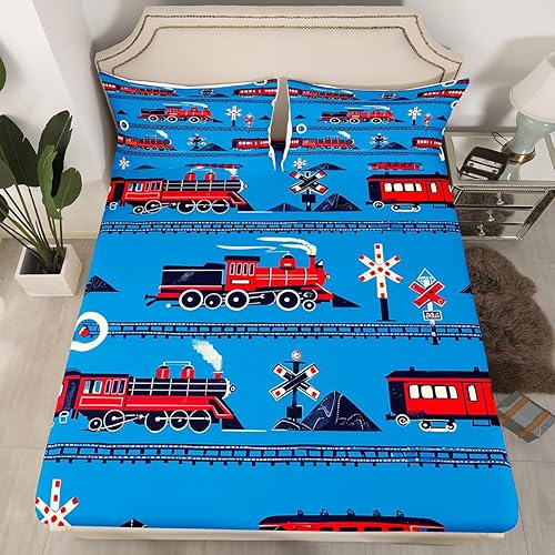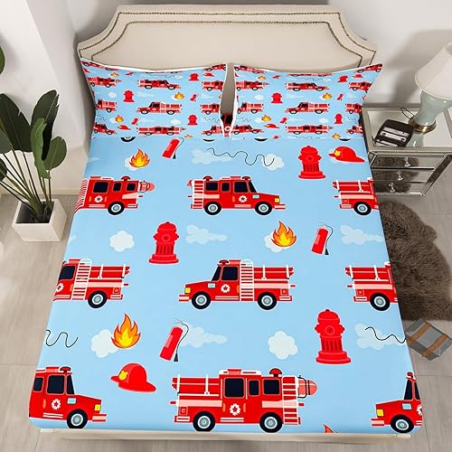 Homewish Drap Housse 90x190 Enfant Camion de Pompier Rouge, Drap-Housse 1 Personne Garçon Camion de Pompier, Drap de Lit Véhicule de Pompier, Housse de Matelas Ambulance Bleu Rouge