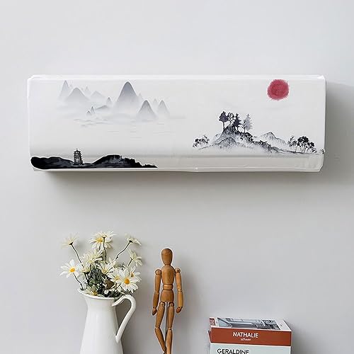 Morbuy Lot de 2 Housse Élastique Climatiseur, Style Chinois Coque de Protection Climatiseur Couvre Intérieur Couvercle du Climatiseur Cache-Poussière Air Conditionné Décoration (80x20x27cm,B)