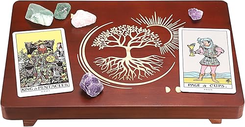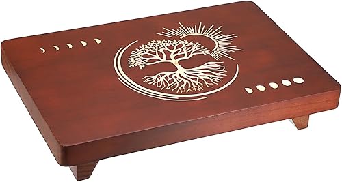SUMTree Table d’autel en Bois Petite Table de méditation Table de Tarot sanctuaire Bouddhiste Phase de Lune et Arbre de Vie (30 x 20 x 6cm), SJFR0233