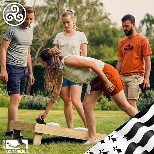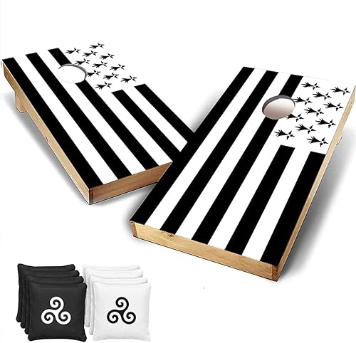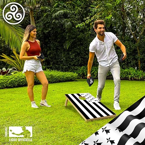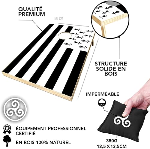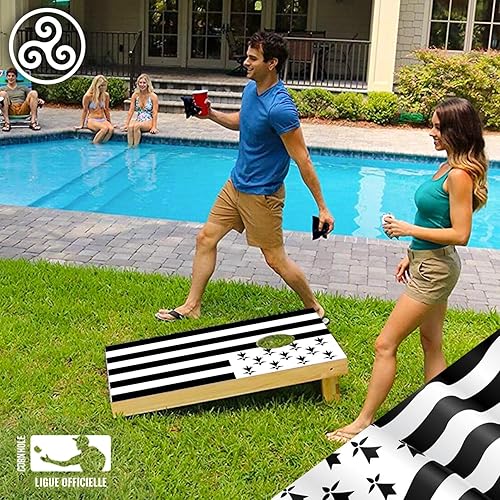 Original Cornhole® Officiel Drapeau Breton | Jeu Cornhole Américain Noir et Blanc | Bretagne, Breizh | Bois Premium | 2 Planches + 8 Sacs + Housse de Transport | OriginalCorner®