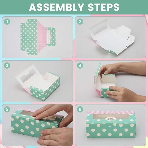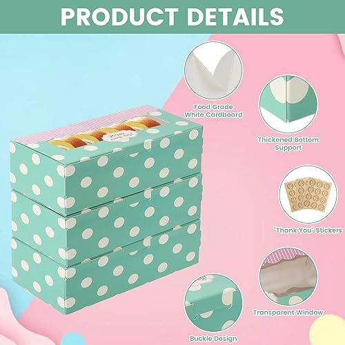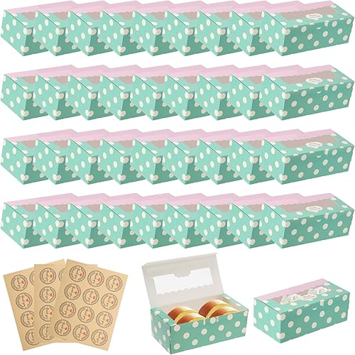 36 Pièces Boîte Gâteaux Cupcakes avec Fenêtre Transparente, 2 Trous Boîte à Cupcakes avec Autocollants Merci, Boîte à Muffins à Cupcakes pour Beignets Biscuits Macarons