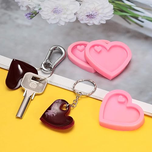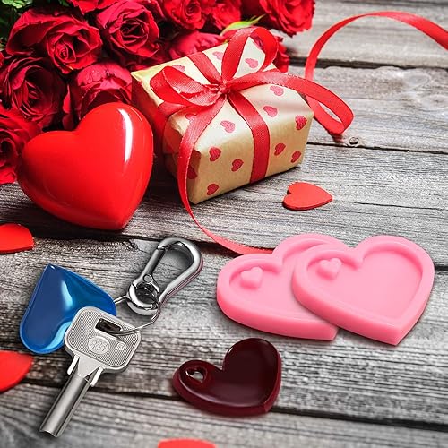 Moule en Silicone Porte-Clés d'Amour en Coeur Saint-Valentin avec Trou Moule à Bonbons au Chocolat Moule à Fondant en Silicone pour Bagages Bricolage Dessert Pendentif Pouding (4)