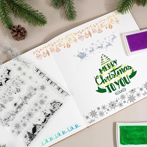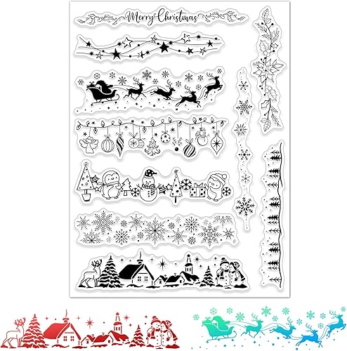 Noël Tampons Transparents Étoile Bonhomme Flocon de Neige Renne Sapin Tampons à Imprimer Boucle de Noël Traîneau Décoration Scrapbooking DIY Artisanat Cartes Album Photo pour Noël Nouvel An Fête