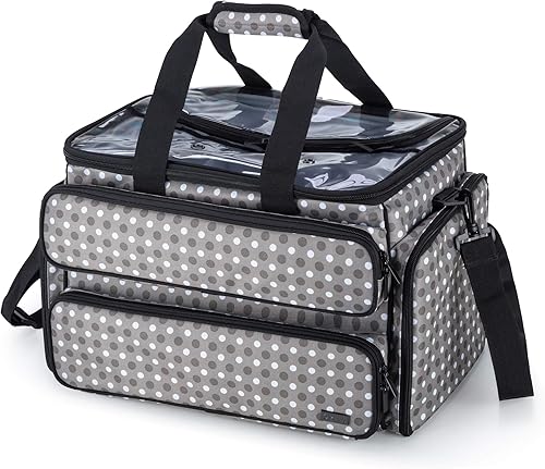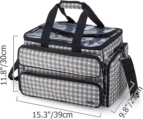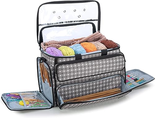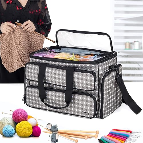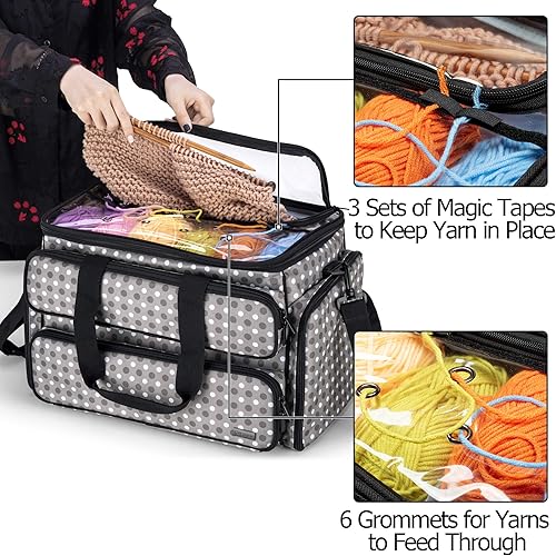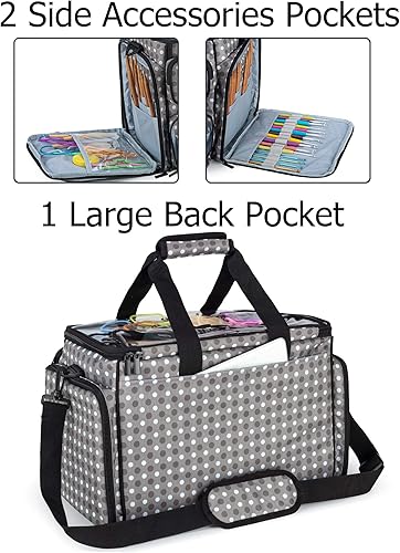 Yarwo Sac à Tricoter, Sac de Rangement pour Laine, Aiguille à Tricoter, Organisateur avec Multiples Poches pour Accessoires du Tricotage, Pois Gris, Sac Vide