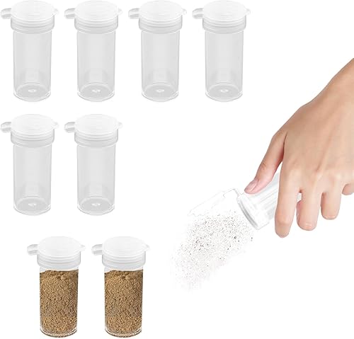 6 Mini Salières en Plastique, Petites Salières Transparentes de 6g, Légères et Pratiques pour Voyage, Camping, Pique Nique, Anti-poussière Avec Couvercle, Sel et Poivre de Table