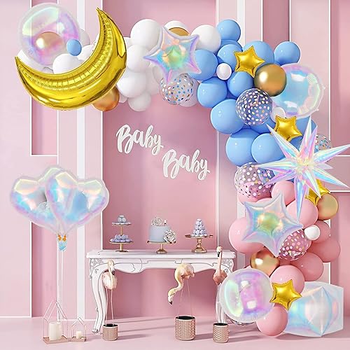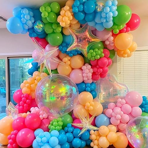 Fangoo 9 pcs Ballons Irisés étoile Explosion étoile Rond Forme d'amour Ballon de Papier d'aluminium 4D Party Ballons Pour Mariage Anniversaire Fête de Fille Décorations