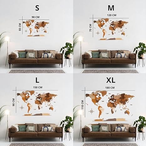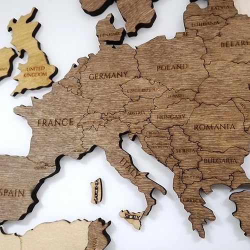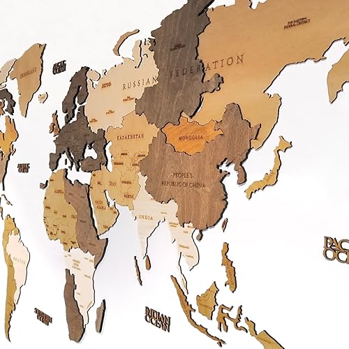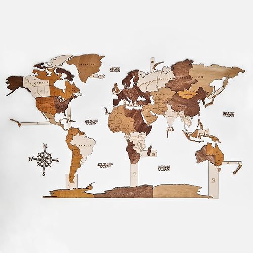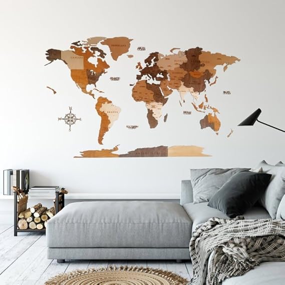 AREDE Carte du Monde en Bois 3D (120 x 75 cm) Multicouche Murale – Décoration Moderne pour Salon, Bureau, Chambre – Idée Cadeau Originale – Design Élégant avec Détails Précis