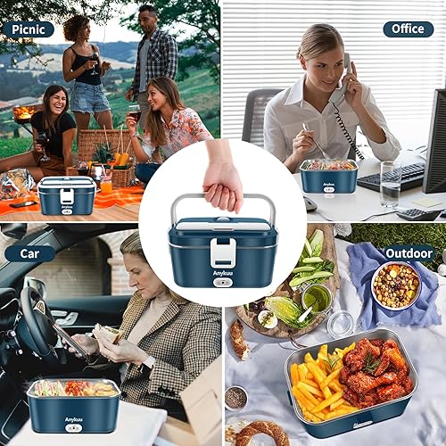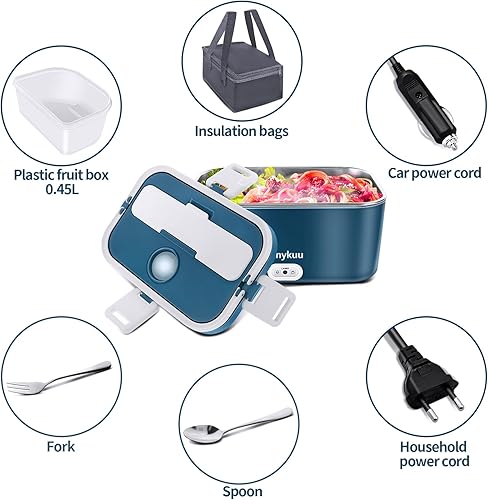 100W Gamelle Chauffante Electrique 1.8 L Chauffage Rapide 12V/24V, 220V/240V, Lunch Box Chauffante Electrique pour la Maison et la Voiture Facile à Nettoyer,Avec sac Isolant à Température Constante