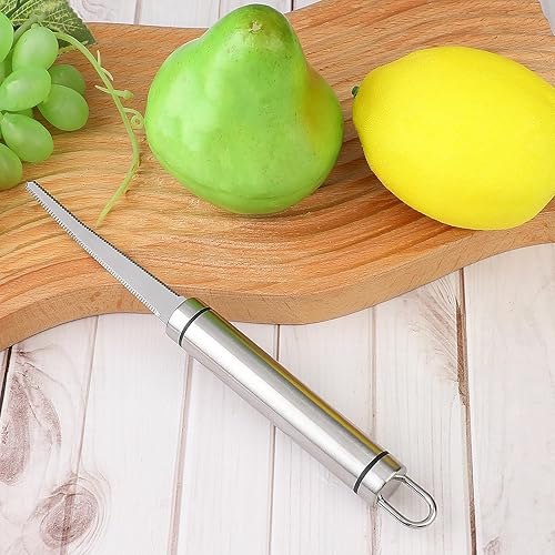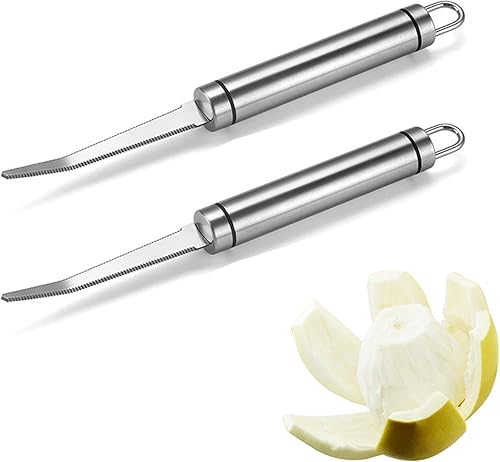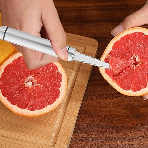 CANCYCC Lot de 2 couteaux à pamplemousse professionnels de 21 cm en acier inoxydable avec double bord dentelé et extrémité incurvée, cuillère à pamplemousse avec boucle de suspension intégrée