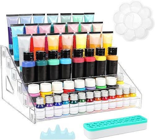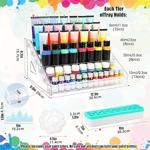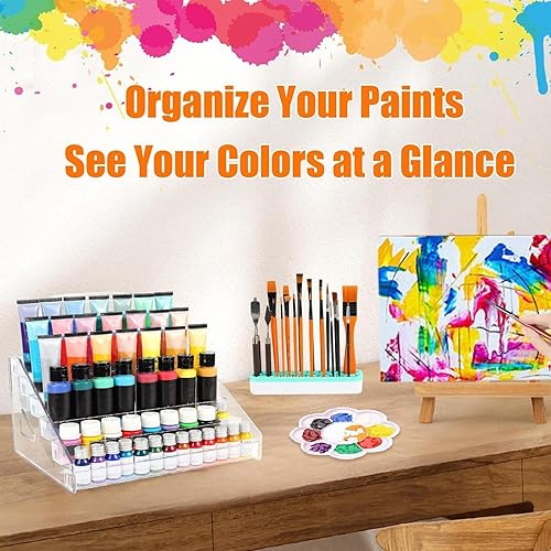 Organisateur de stockage de peinture, support d'organisateur de peinture - Support de rangement transparent pour bouteilles de peinture avec porte-pinceau | Ensemble d'étagères sur pied pour l'organis