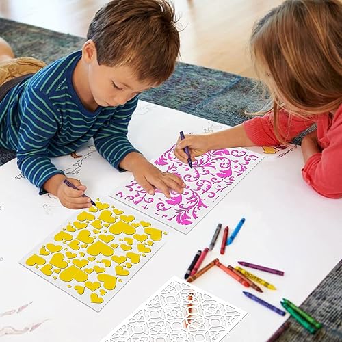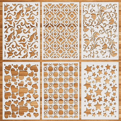 OOTSR 6 Pièces Pochoirs de Peinture en Plastique Réutilisables, Pochoirs de Dessin de Peinture pour DIY Scrapbooking Bois Meubles Mur Maison Design, 26.2x 17.8cm