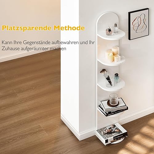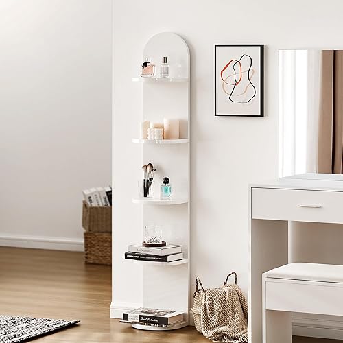 CLIPOP Étagère sur pied à 5 niveaux, étagère de rangement, indépendante, montage mural, pour chambre à coucher, salon, cuisine, blanc, 145 x 25 x 20 cm