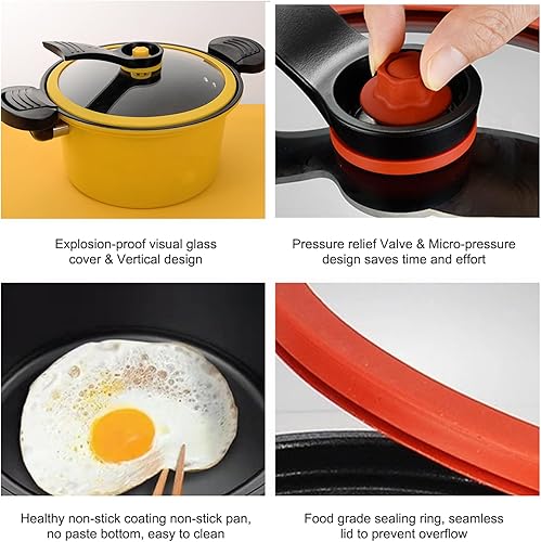 Pot de pression, Stockpot de 3, 5 L temps avec un couvercle transparent et verrouillage à double oreille, autocuiseur à petite pression usage avec poignée et soupape relief, antiadhésif