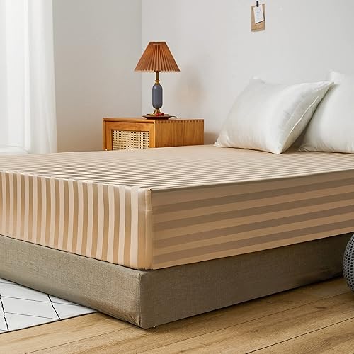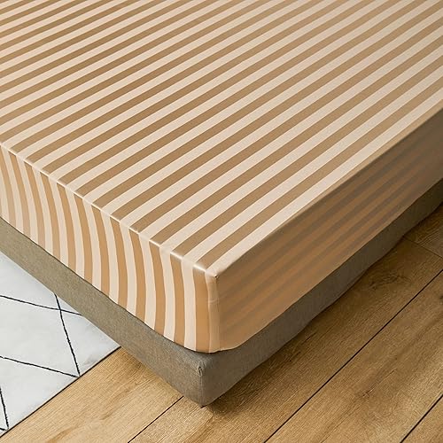 Damier Drap-housse en satin 160 x 200 cm - Beige - Brillant - Rayures satinées de qualité supérieure - Convient pour les matelas jusqu'à 30 cm