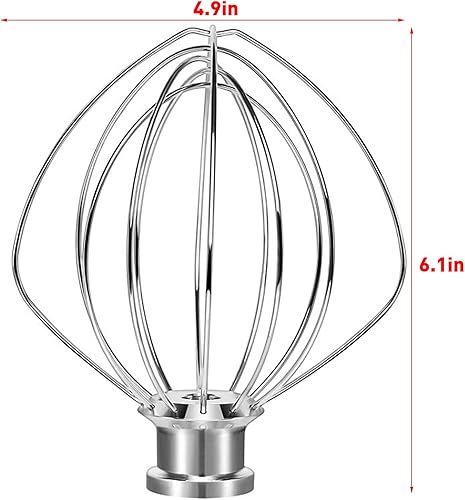 K45WW Fouet de rechange en acier inoxydable à 6 fils compatible avec les accessoires de mixeur KitchenAid, mélangeur à crème aux œufs, fouet pour cupcakes, fouet à gâteau à la farine, mixeur à