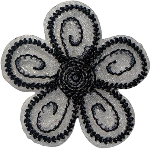 FILOUFACE Patch Ecusson Thermocollant Petite Fleur Coloris Blanc Gris 4 x 4 cm